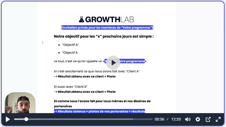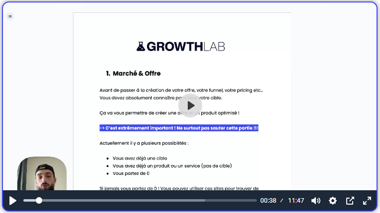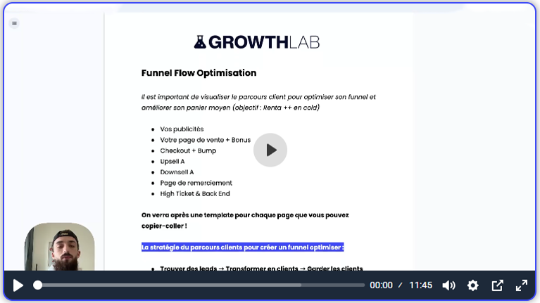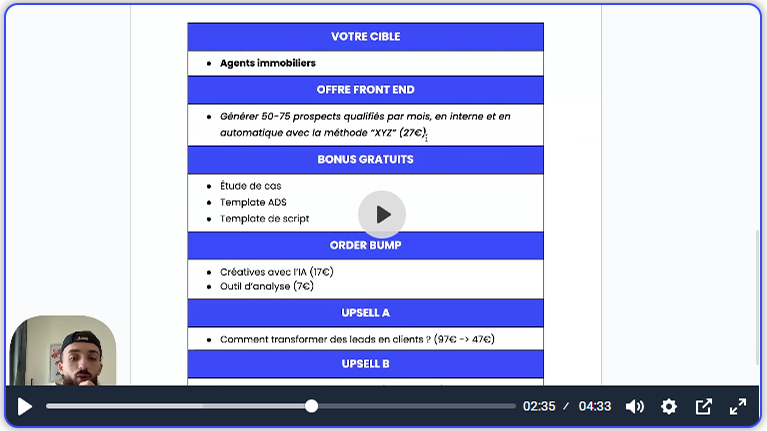 Sous chaque vidéo, un Google Doc de conversion transforme naturellement les acheteurs en clients High Ticket.