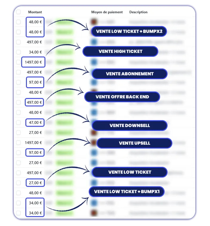 Page de vente, Bump, Upsell, Downsell, page de remerciement...