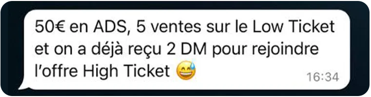 10-15% des clients Low Ticket seront intéressé pour upgrade vers votre offre High Ticket