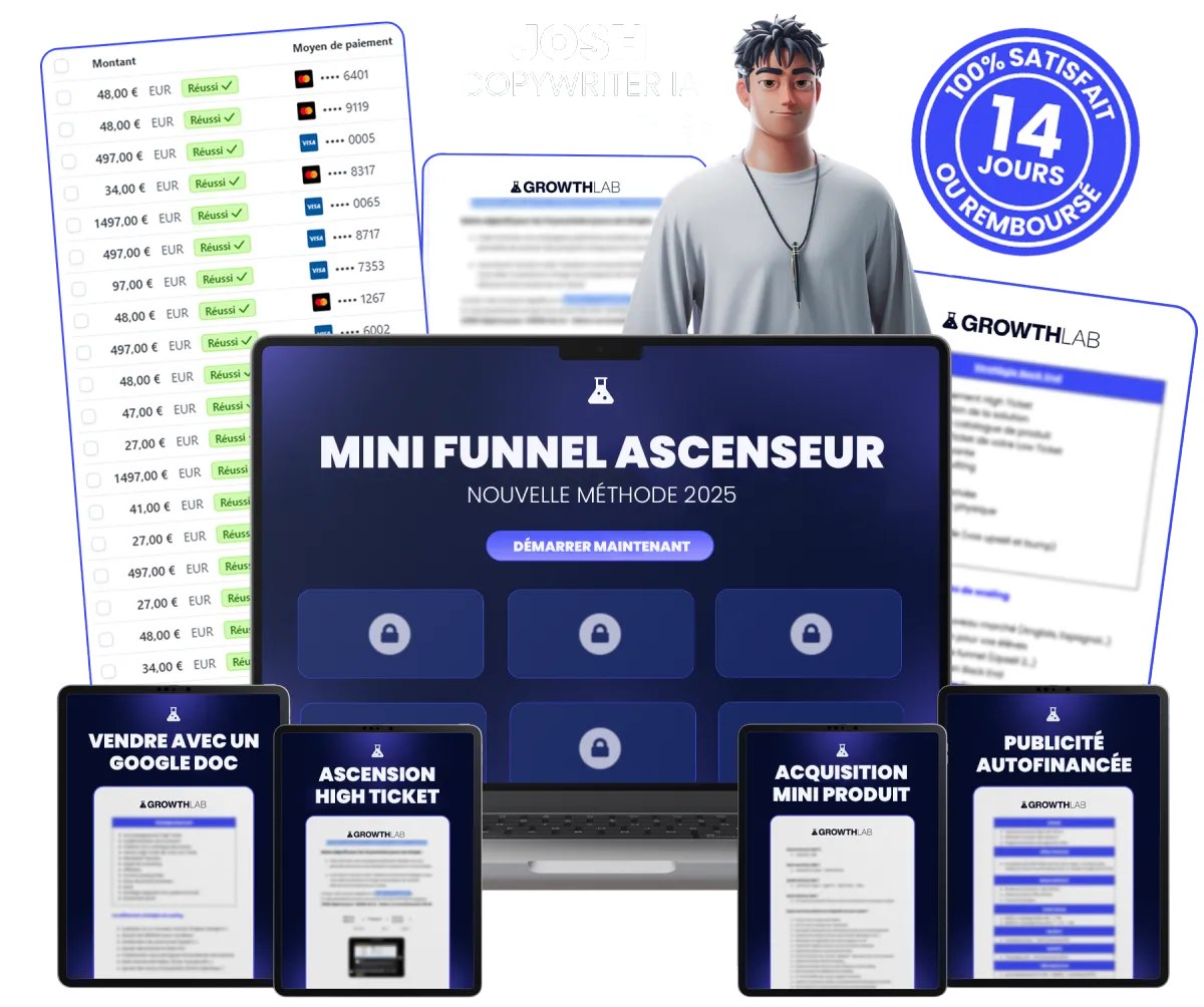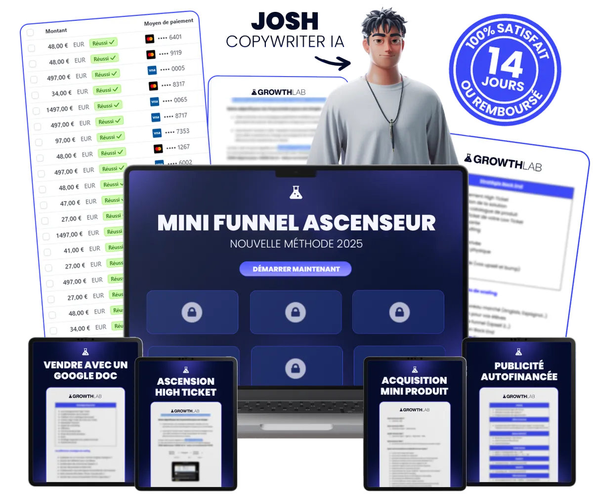 Une formation complète (+10 vidéos) et les ressources à copier-coller pour lancer votre Mini Funnel Ascenseur rentable en 72h