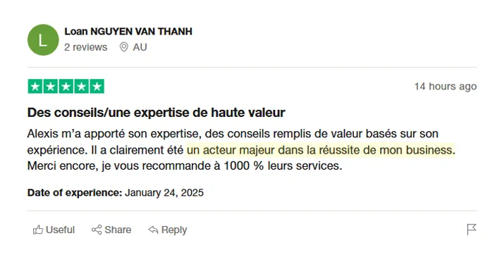 Nous sommes confiants sur la qualité et nous sommes persuadés que vous allez obtenir des résultats.
