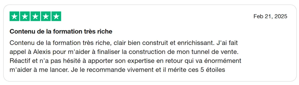 Si vous n'êtes pas entièrement satisfait de la formation, je vous rembourse intégralement votre investissement.